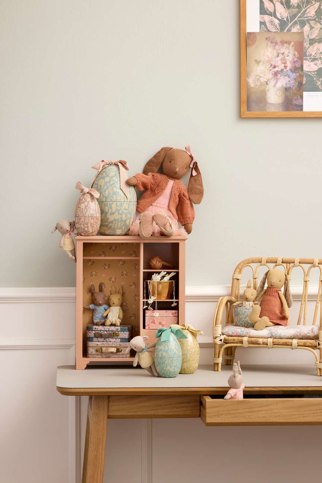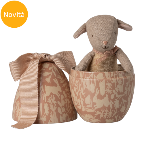 Novità Maileg della Pasqua 2026 questo articolo è perfetto come regalo per la tua bambina. All'interno di un uovo rosa in metallo, finemente decorato con una splendida stampa a tema (raffigurante conigli e agnellini fra motivi floreali) è racchiuso un simpatico animaletto di stoffa. Ad abbellire l'uovo c'è un grande fiocco morbido sulla parte superiore sempre della medesima delicata tonalità pastello. La sorpresa è un incantevole agnellino, che indossa un body giallo, realizzato in morbido lino e cotone, con cura per i dettagli come il naso e il fiocco rosa al collo. La tua bambina amerà da subito la sua nuova piccola amica, così soffice e dall'aspetto super dolce. L'uovo può essere utilizzato anche come elemento decorativo per la Pasqua o per nascondere in futuro altre sorprese.