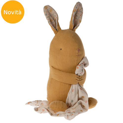 Amici delle Ninna nanna" Maileg è una stupenda collezione di bellissimi articoli per bambini, ideata per il momento del sonnellino. Questo coniglietto giallo tiene tra le zampe un morbido panno a pois colorati (una sorta di coperta di Linus), tutta da coccolare. Tirando delicatamente la sua coda, il peluche/carillon suonerà una rilassante ninna nanna, per cullare il neonato nel mondo dei sogni. Il coniglietto è realizzato in tessuti di qualità eco-sostenibili (lino e cotone), soffici e freschi. Il carillon è confezionato in un'originale e divertente confezione regalo, che non mancherà di stupire genitori e nonni. Senza dubbio il carillon è un prodotto ideale per festeggiare la nascita di un bimbo o i suoi primi mesi di vita. Acquista anche il Maialino peluche carillon