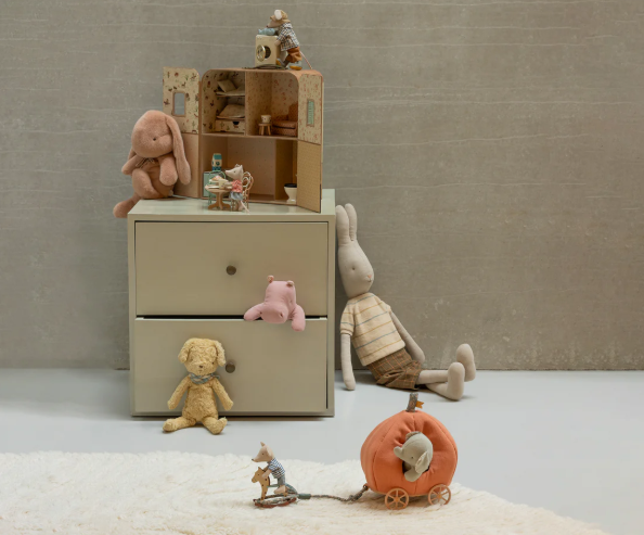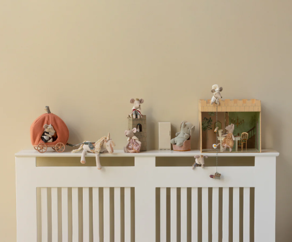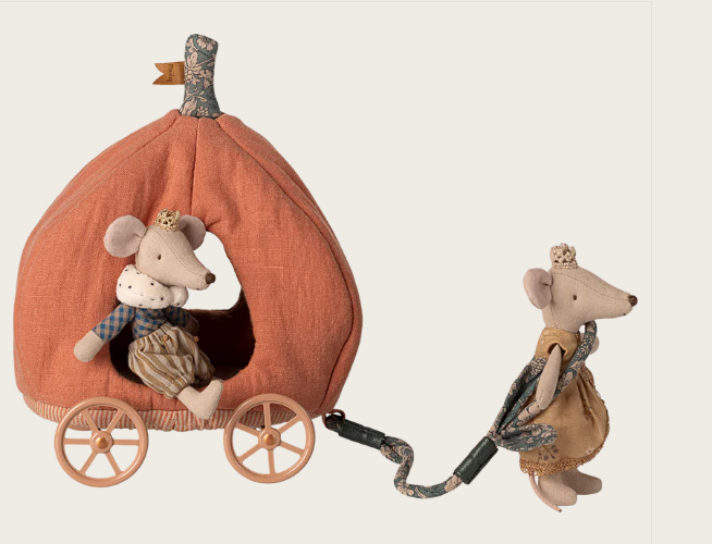 Proprio come nella famosa fiaba di Cenerentola, rendi la favola dei topini reali ancora più magica, con questa lussuosa e originale vettura: una meraviglioso carrozza a forma di zucca. Perfetta per i loro viaggi fuori dal castello, incanterà il tuo bambino/a, liberando la sua fantasia e trasformando ogni gioco in un'avventura incantata. Ultimissima novità del mondo maileg, la carrozza trasporterà il tuo bambino in un mondo fatato, dove regnano eleganza e raffinatezza. La carrozza è realizzata con componenti in diversi materiali: cotone/lino/legno e metallo. La grande attenzione ai dettagli, come le diverse fantasie scelte per l'imbottitura interna della zucca e il cordino, in aggiunta alla mobidezza del tessuto, rendono il gioco un articolo imperdibile. Completa il gioco con Topo Principe e Topina Principessa.